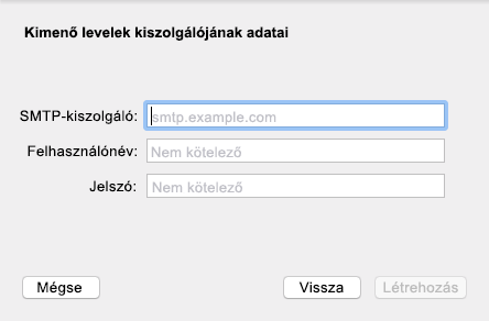 Adja meg az SMTP-kiszolgálót, a felhasználónevét és a jelszavát.