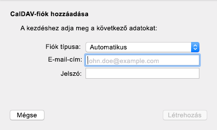 A Mac Naptár alkalmazásban válassza a Naptár > Fiók hozzáadása lehetőséget.