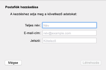A Mac Levél alkalmazásban válassza a Levél > Fiók hozzáadása lehetőséget.