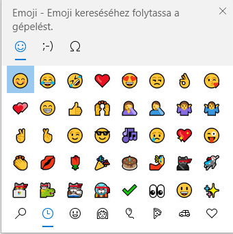 Használja a Windows billentyű + . (pont) billentyűkombinációt az Emoji menü megnyitásához.