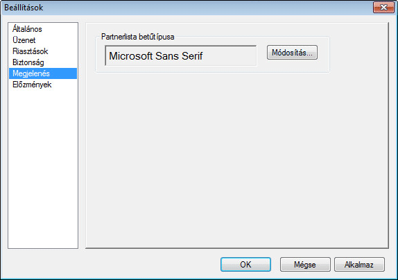 Kattintson a Módosítás gombra, majd válassza ki a betűtípust, a betűstílust és a betűméretet.