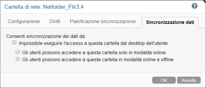 Filr 3.4 fornisce un controllo dettagliato per visualizzare le cartelle di rete sul desktop dell'utente in modalità online oppure in entrambe le modalità online e offline.