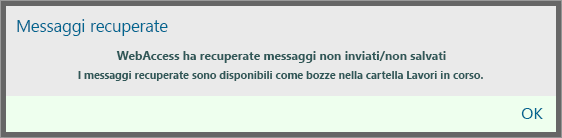 Quando si avvia WebAccess e viene recuperato solo un messaggio salvato automaticamente, viene visualizzato il seguente messaggio: