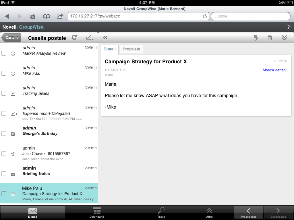 La casella postale si aggiorna automaticamente alla ricezione di nuovi elementi; questo consente di visualizzare i contenuti della casella postale GroupWise in tempo reale.