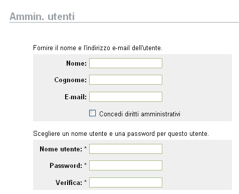 I campi con un asterisco (*) sono obbligatori e il nome utente deve essere univoco.