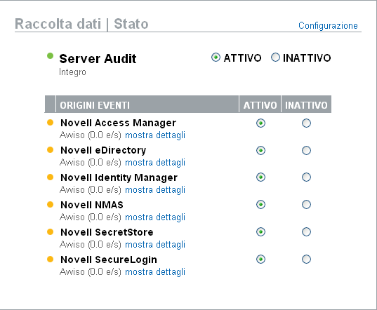 Nella sezione gli amministratori possono attivare la raccolta di dati a livello di applicazione. Queste impostazioni possono influire sulla raccolta di dati per numerosi server (ad esempio più istanze di eDirectory).