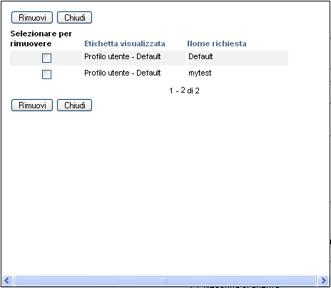 Non è possibile rimuovere una delle definizioni di richieste di default installate insieme al prodotto. Nelle definizioni delle richieste di default non viene quindi visualizzata la casella di controllo.
