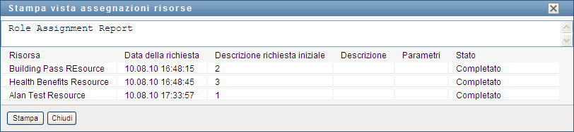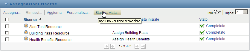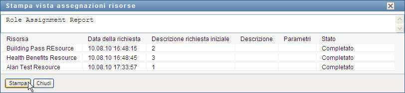 L'applicazione utente visualizza una versione stampabile dell'elenco delle assegnazioni risorse in una nuova finestra.
