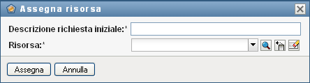 Nel dashboard di lavoro viene visualizzata la finestra di dialogo , in cui è possibile specificare la risorsa che si desidera richiedere: