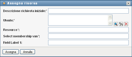 Fare clic sul selettore oggetti per ricercare una risorsa da assegnare.