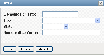 Fare clic su per eseguire una nuova query per richieste utilizzando i criteri di selezione specificati nella finestra di dialogo Filtro.