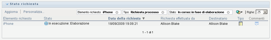 Tale elenco include richieste attive, nonché richieste che sono già state approvate o rifiutate. L'amministratore può gestire il tempo di permanenza dei risultati del workflow. Per default, il sistema di workflow mantiene i risultati di workflow per 120 giorni.
