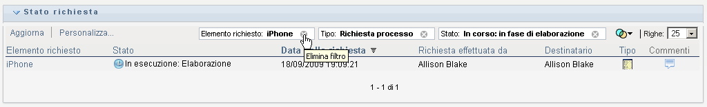La finestra di dialogo Filtro viene chiusa e l'elenco di richieste viene aggiornato per includere tutte le richieste.
