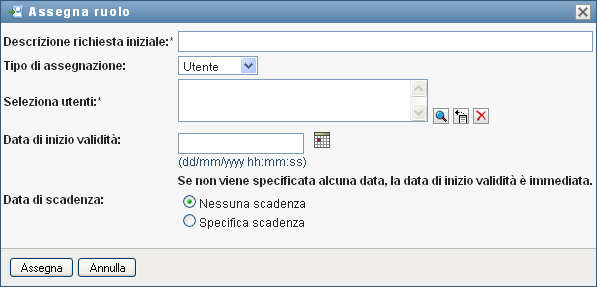 Per default, la data di scadenza è impostata su ad indicare che l'assegnazione del ruolo rimarrà effettiva per un tempo indefinito.