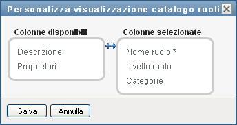 Specificare una stringa di filtro per il nome o la descrizione del ruolo oppure selezionare uno o più livelli o categorie di ruolo nella finestra di dialogo .