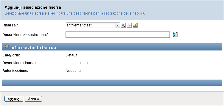 Utilizzare il selettore oggetti per selezionare la risorsa desiderata e fornire testo descrittivo del motivo dell'associazione.