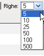 Fare clic sull'elenco a discesa Righe e selezionare il numero di righe che si desidera visualizzare in ciascuna pagina: