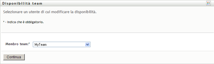 L'elenco dei team include i team per i quali i manager possono definire la disponibilità (come specificato nei diritti di richieste del team) nonché i team per i quali l'impostazione delle disponibilità è disabilitata. Se una particolare definizione non consente ai manager del team di impostare la disponibilità, i manager possono ancora visualizzare le impostazioni di disponibilità definite per i membri del team dall'amministratore o dal manager di un altro team a cui gli utenti appartengono. Il manager del team non può tuttavia modificare o eliminare queste impostazioni, visualizzarne i dettagli o creare nuove assegnazioni di disponibilità.
