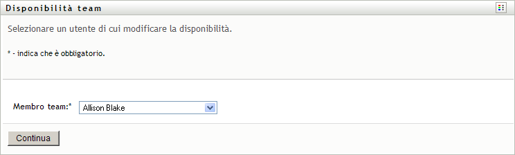 Verranno visualizzate le eventuali impostazioni di disponibilità per il membro del team selezionato.