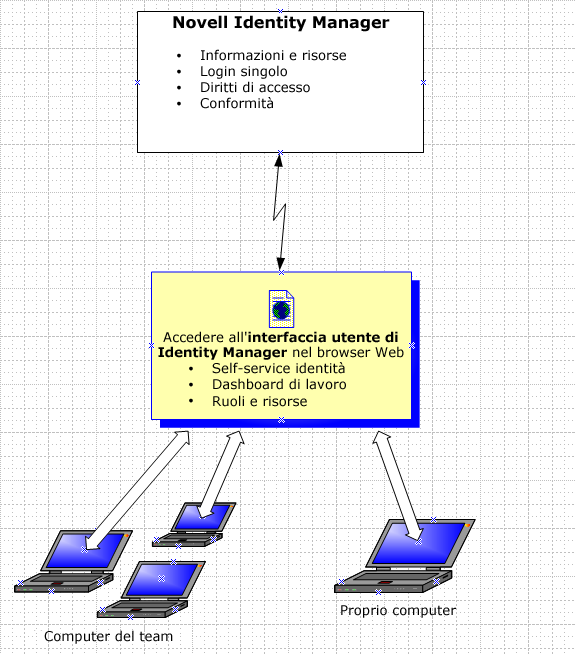 Figura 1-1 L'applicazione utente di Identity Manager offre l'interfaccia utente a Identity Manager
