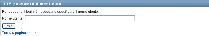 Per eseguire il login all'applicazione di Identity Manager dalla pagina iniziale, è necessario disporre delle autorizzazioni necessarie. Per ottenere nome utente e password per il login, rivolgersi all'amministratore del sistema.