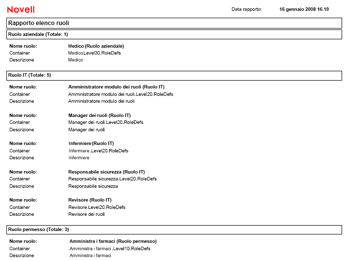 Figura 18-1 Esempio di rapporto elenco ruoli