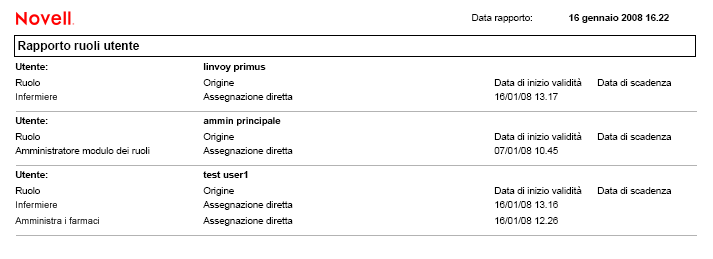 Il Rapporto ruoli utente mostra: