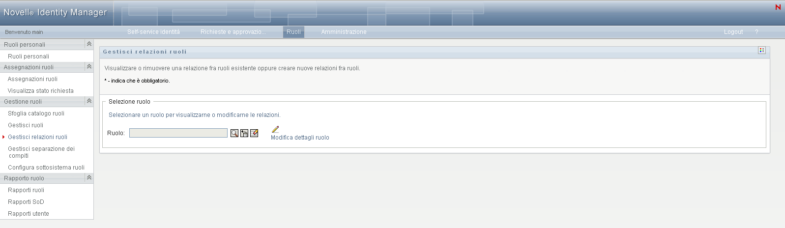Per individuare il ruolo per il quale si desidera aggiungere o rimuovere una relazione, utilizzare lo strumento o come descritto in Sezione 1.4.4, Azioni comuni degli utenti.