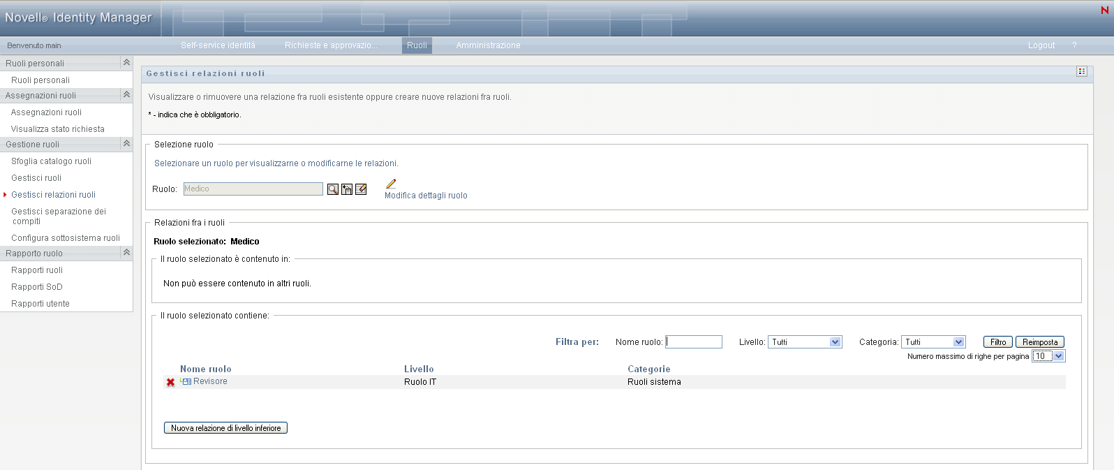 I ruoli di livello medio (ruoli IT) possono contenere ruoli di livello inferiore e possono essere contenuti in ruoli di livello superiore. La pagina Relazione ruolo consente di aggiungere nuovi ruoli di livello inferiore o superiore.