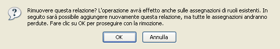 Verrà chiesto di confermare se si desidera rimuovere la relazione.