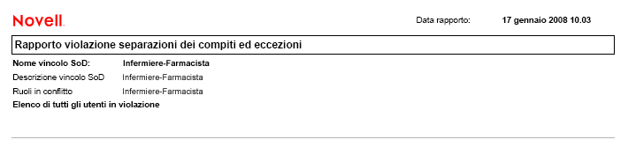 Il Rapporto violazione separazioni dei compiti ed eccezioni mostra: