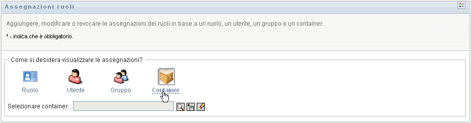 Selezionare il container a cui si desidera assegnare uno o più ruoli.