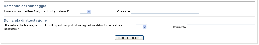 Per tutti i tipi di attestazione il modulo mostra i controlli che consentono di rispondere alla domanda di attestazione richiesta e a tutte le ulteriori domande di un sondaggio nel processo di attestazione: