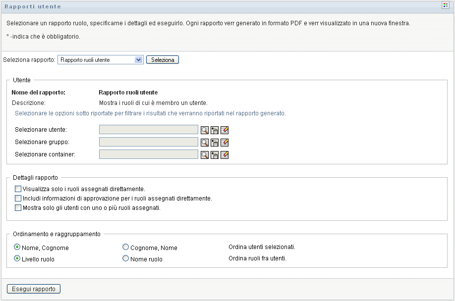 Nel riquadro , scegliere se ordinare i ruoli di ciascun utente per livello o nome.
