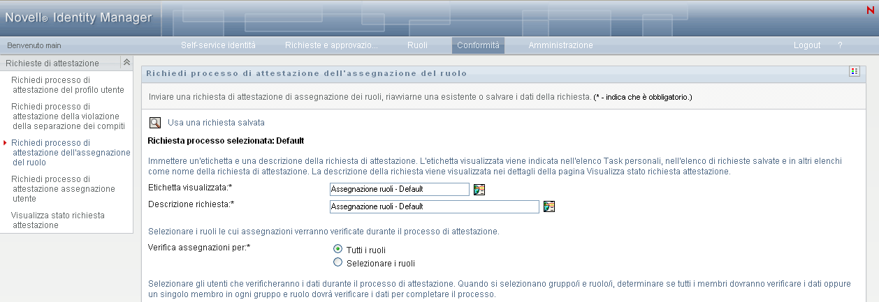Le azioni vengono visualizzate solo se si è amministratori della conformità.