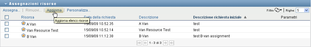 Per aggiornare l'elenco delle assegnazioni di risorse: