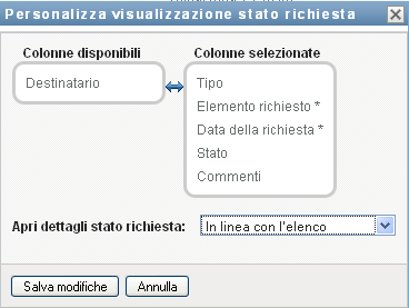 Per personalizzare la visualizzazione delle colonne nell'elenco Stato richieste:
