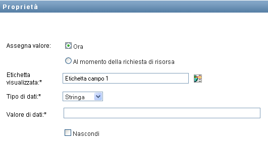 Per nascondere il valore nel modulo di richiesta, fare clic su . Un campo nascosto nel modulo di richiesta è comunque visibile nel modulo di approvazione.