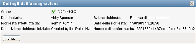 Viene visualizzata la finestra Dettagli dell'assegnazione: