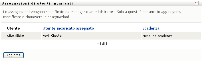 Verranno visualizzate le impostazioni attuali. Le assegnazioni di utenti incaricati visualizzate sono quelle mediante le quali gli utenti possono essere designati come utenti incaricati.