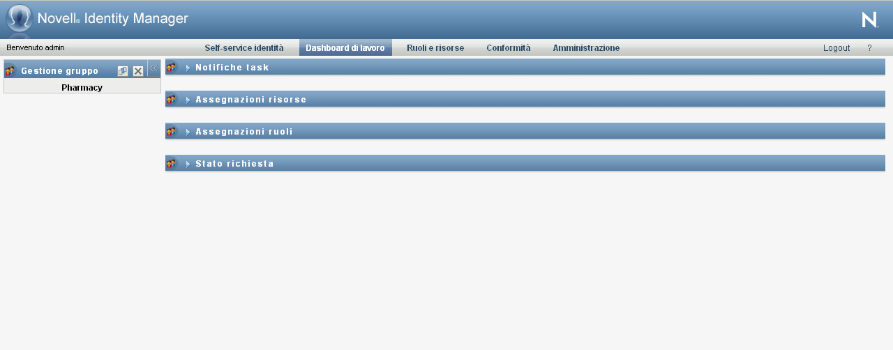 Quando si seleziona un gruppo, le sezioni Profilo utente, Notifiche task, Assegnazioni risorse, Assegnazioni ruoli e Stato richiesta della pagina mostrano l'icona seguente: