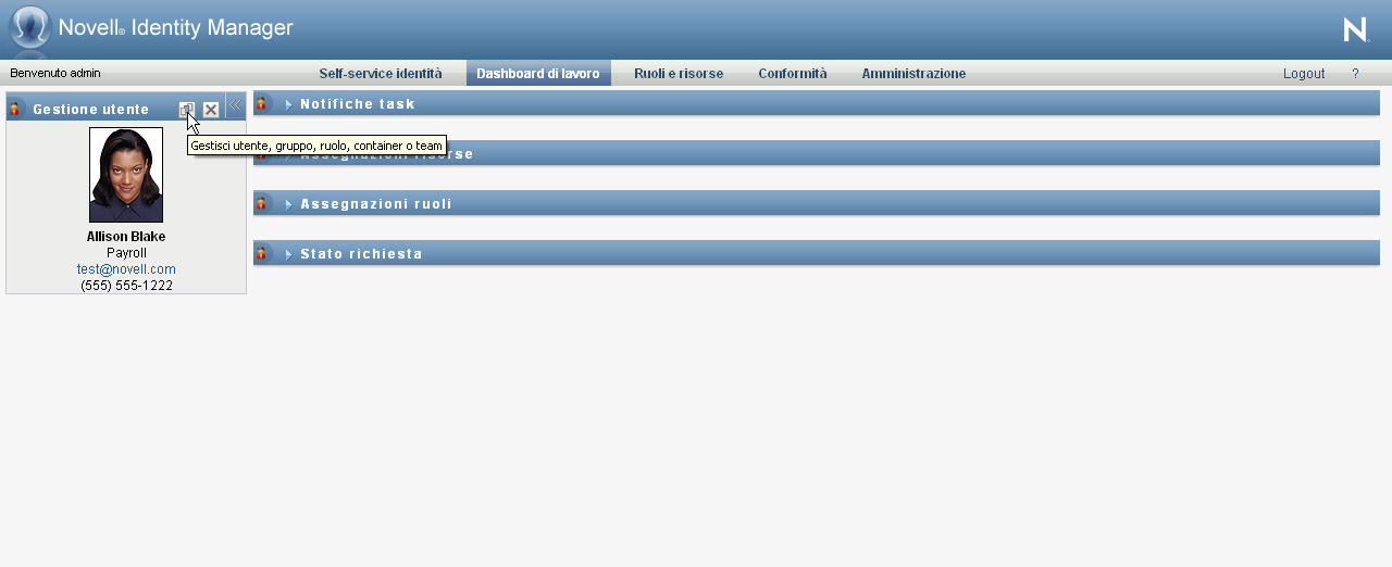 Fare clic sul pulsante Manage User, Group, Role or Container (Gestisci utente, gruppo, ruolo, container o team) nella sezione Profilo utente.