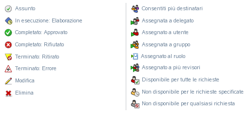 Indica che un determinato task di workflow è stato delegato a un altro utente. Questo task viene visualizzato nella coda utente corrente dal momento che l'assegnatario originale ha dichiarato di non essere disponibile. Dal momento che l'utente corrente è il delegato dell'assegnatario originale è in grado di visualizzare il task.