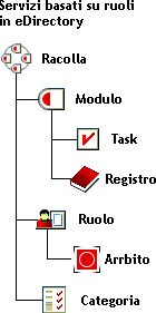 Insieme di ruoli e task di gruppi di categorie specifici per una particolare funzione. In iManager sono incluse 14 categorie di default: Autenticazione e parole d'ordine, Collaborazione, Directory, Gestione dei file, Identity Manager, Infrastruttura, Installazione e upgrade, Rete, Nsure Audit, Stampa, Sicurezza, Server, Licenze software e rete, Uso e Utenti e gruppi. L'opzione Tutte le categorie consente di visualizzare tutti i ruoli e i task disponibili. È inoltre possibile creare nuove categorie e assegnarvi ruoli e task. |