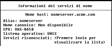 The utility displays the Name Service Information screen, which lists the available DNS information for the remote host.