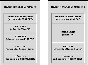 To provide seamless connectivity in a TCP/IP environment, the NetWare/IP client uses the same Link Support LayerTM (LSLTM ) driver, Open Data-Link InterfaceTM (ODITM ) driver, and NetWare DOS RequesterTM as an IPX-based NetWare client. However, to provide the TCP/IP transport, the IPX driver is replaced by the following software modules in NetWare/IP: