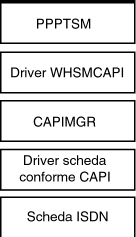To run the Point-to-Point Protocol (PPP) over Integrated Services Digital Network (ISDN) on a Novell router, you must use an ISDN board driver that is compliant with the Common Application Program Interface (CAPI) standard. A CAPI-compliant driver is able to communicate with CAPIMGR, which then communicates with the WHSMCAPI driver. The WHSMCAPI driver converts CAPI ISDN signaling into PPP signaling. Finally, the WHSMCAPI driver provides a WHSM (WAN Hardware Specific ModuleTM) interface with the PPP Data-Link layer (PPPTSM.NLM). The relationship of these modules is shown in Figure 2-1.
