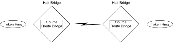 Using two half-bridges across a WAN link offers a distinct advantage over using full bridges by not adding a hop count to the frames using this data path. This configuration can be used if both half-bridges use Novell source route bridge software.