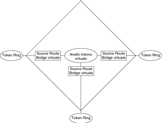 Although virtual internal rings and virtual internal bridges have no corresponding physical devices, they appear in the routes specified in a frame's information field and are treated as if they were actual rings and bridges. The additional logic needed to implement the virtual internal ring with multiple virtual internal bridges does not impact performance. In fact, by using the virtual internal ring, the bridging logic can take advantage of the hardware support on the interface boards and significantly improve bridge performance.