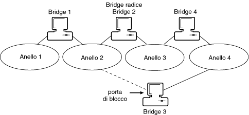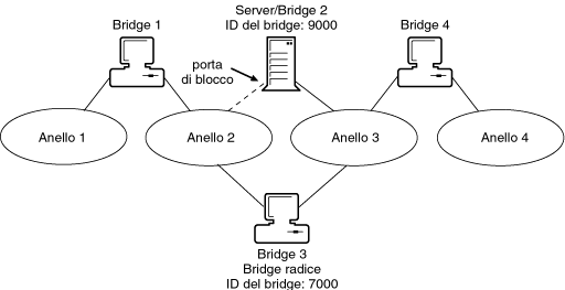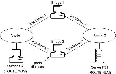 The Spanning Tree Protocol does not set all bridged interfaces automatically on a single Novell router to blocking mode. For clients and administrators to have access to bridged print/file services, network management, or other applications, at least one interface to each source route bridge must be able to forward packets.